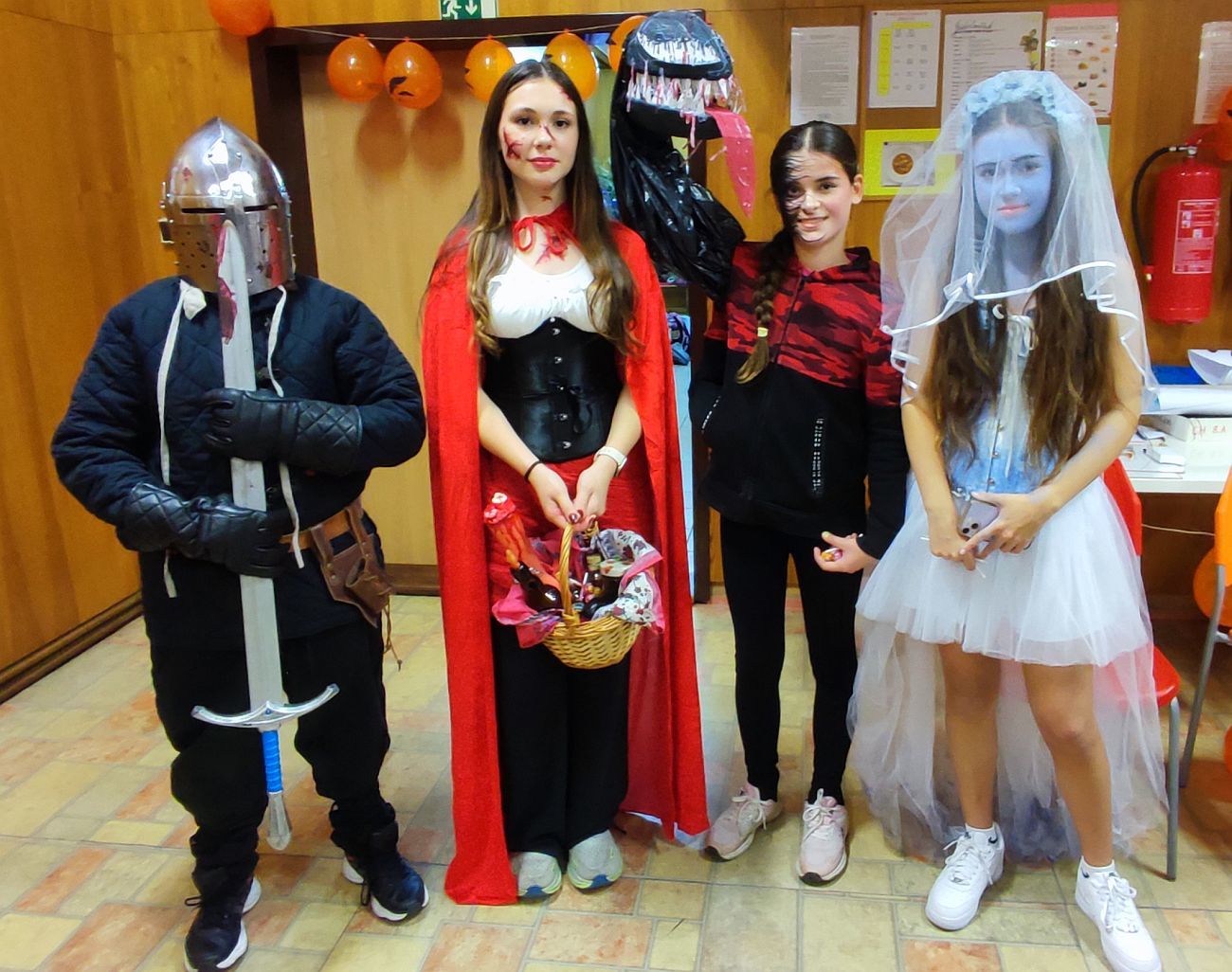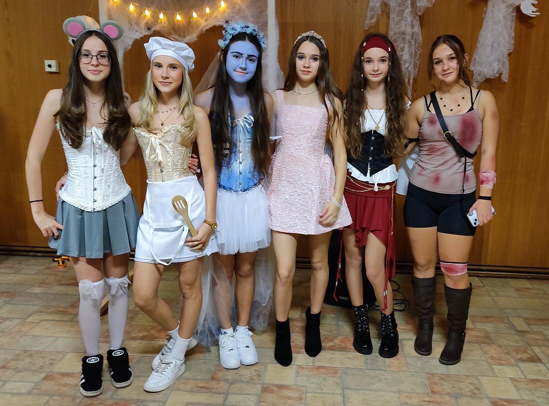 I letos mohli žáci využít čas Halloweenu na předvedení pestrých převleků. Někteří přišli oblečení a namaskovaní jako různé strašidelné, filmové nebo i jiné postavy již dopoledne na vyučování. Jiní až vpodvečer na párty.