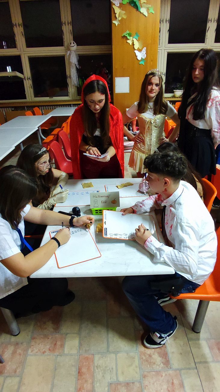 Tu zorganizovali zástupci v žákovském parlamentu. Halloweensky vyzdobili školní jídelnu, připravili tematické kvízy, fotokoutek a playlist oblíbených písniček. Po tanci a soutěžích byly vyhlášeny a odměněny nejpovedenější masky.