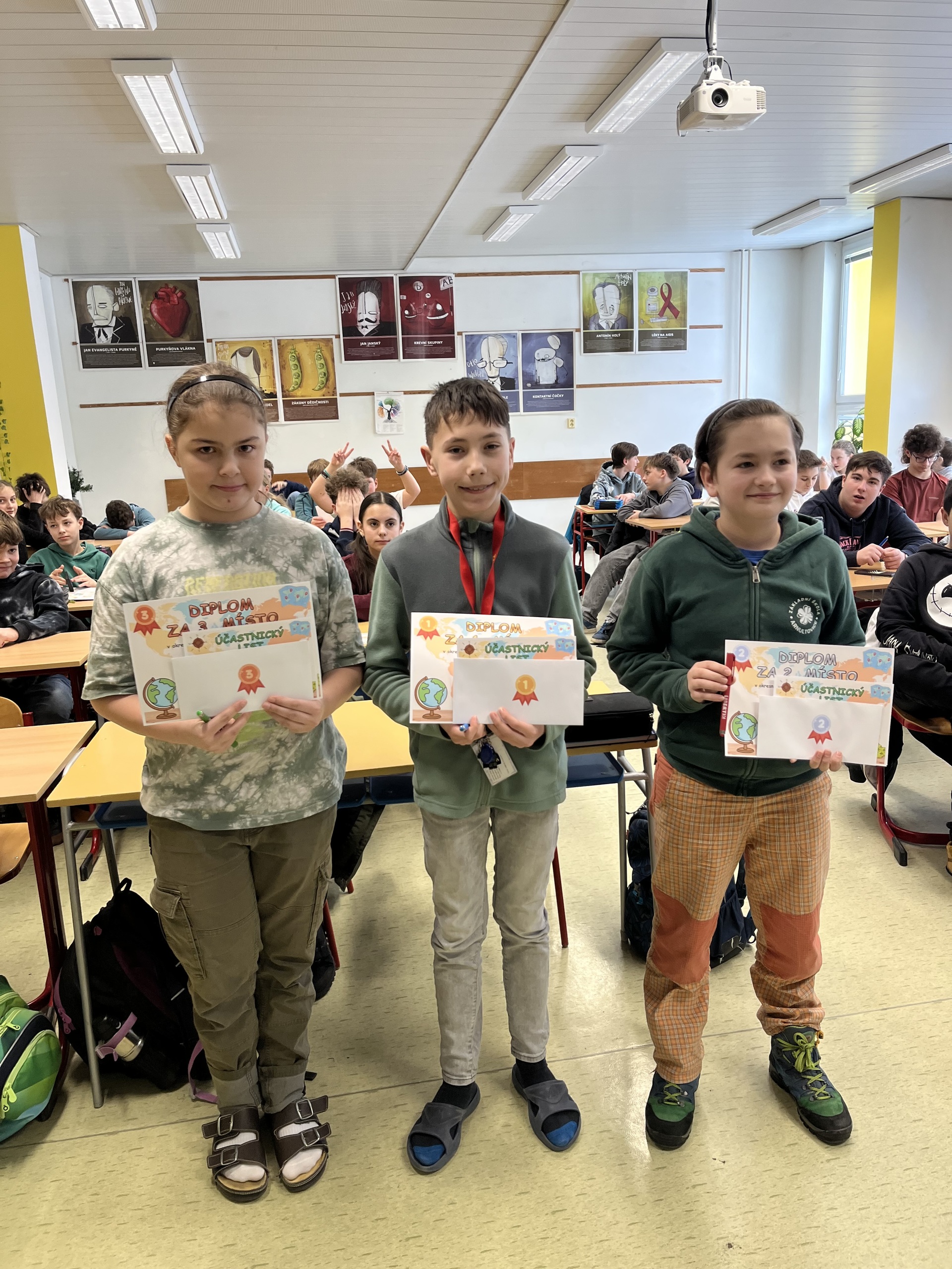 Dne 18. února 2026 se šest chlapců naší školy vydalo do České Lípy na okresní kolo Geografické olympiády. Soutěžilo se ve třech kategoriích a každý účastník musel absolvovat práci s atlasem, test geografických znalostí a praktickou část. Kluci se reprezentace naší školy zhostili důstojně a přiváží krásná umístění. V kategorii 6. tříd skončil na krásném 2. místě Jaroslav Svoboda (6.B), který si tímto krásným umístěním zajistil účast v krajském kole, na 11. místě ho doplnil Filip Matys z 6.C. V kategorii 7. tříd se na 6. místě skončil Jonáš Bonifác Lukeš (7.B) a o 5 příček níže Kryštof Slezák (7.C). V kategorii 8. - 9. tříd naši školu reprezentoval Alan Rosenkranz (8.D) a Vítek Neumann (9.C), kteří se ve výsledcích seřadili za sebe na 10. a 11. místo.