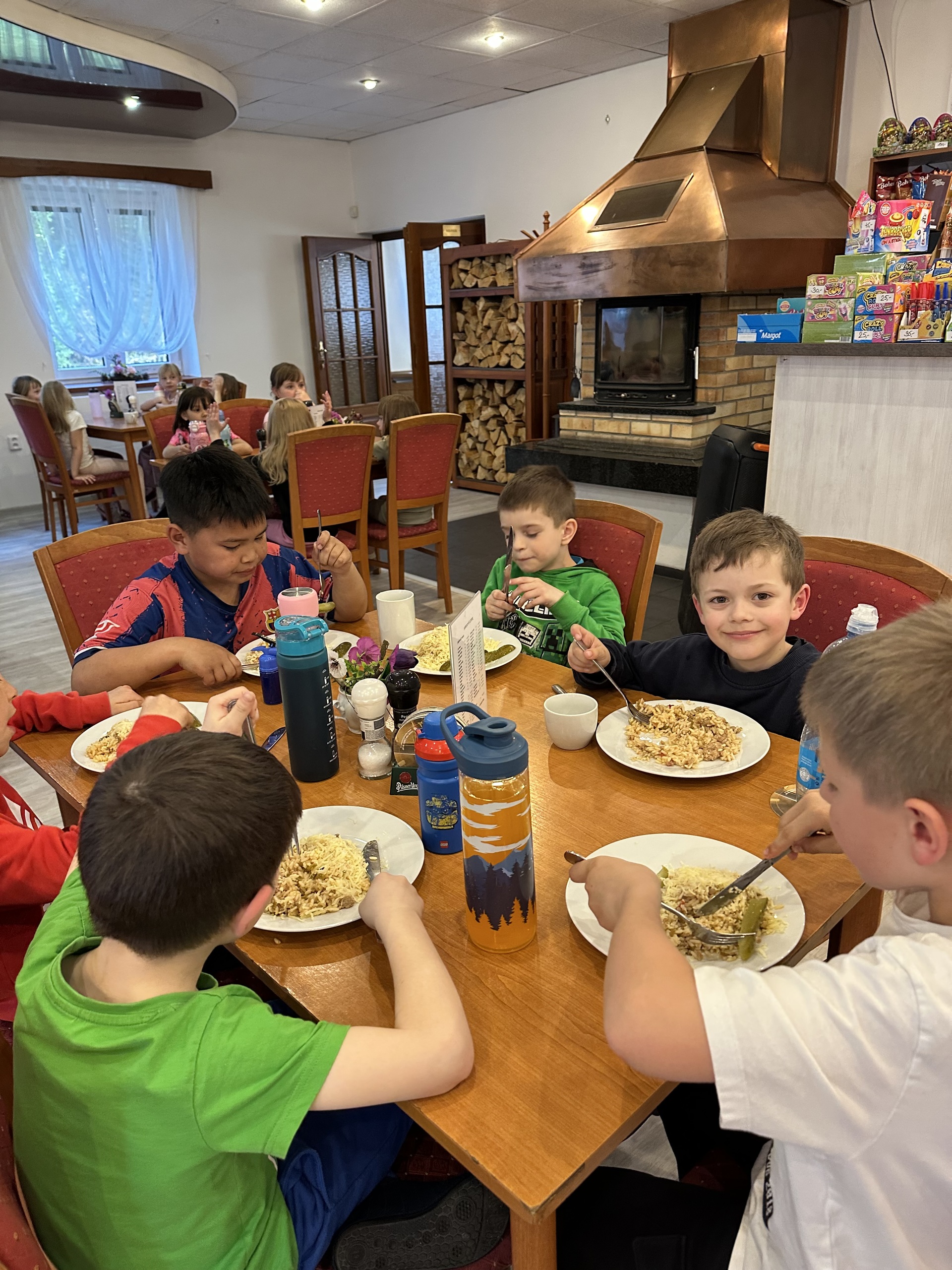 První den nám při cestování počasí sice moc nepřálo, ale dorazili jsme v pořádku. Po ubytování a výborném obědě nám vlastně déšť vůbec nevadil, protože jsme odpoledne strávili ve vířivce a navečer pak řešili didaktické kvízy, hádanky a soutěže o přírodě.