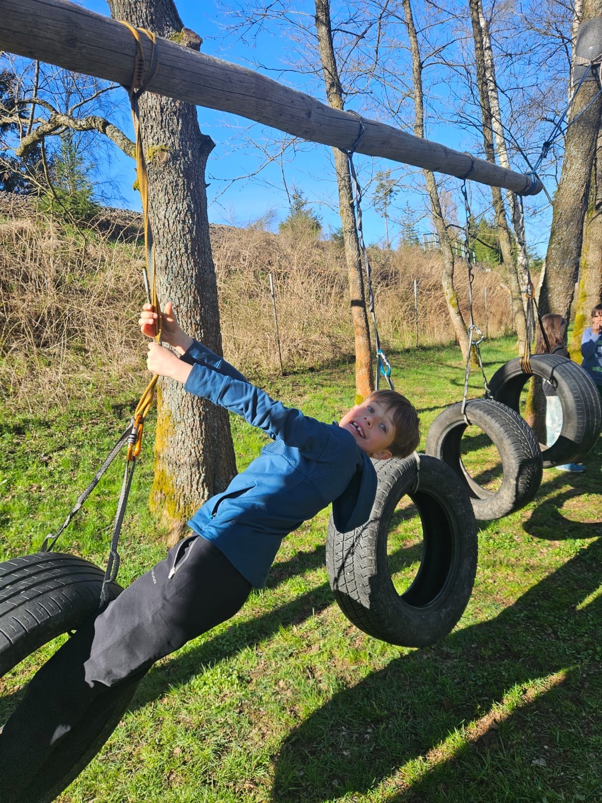 Ve středu jsme oslavili „Den země“ projekty o vlaštovkách, žábách, čápech a kurzem horolezectví a překonáváním lanové dráhy.