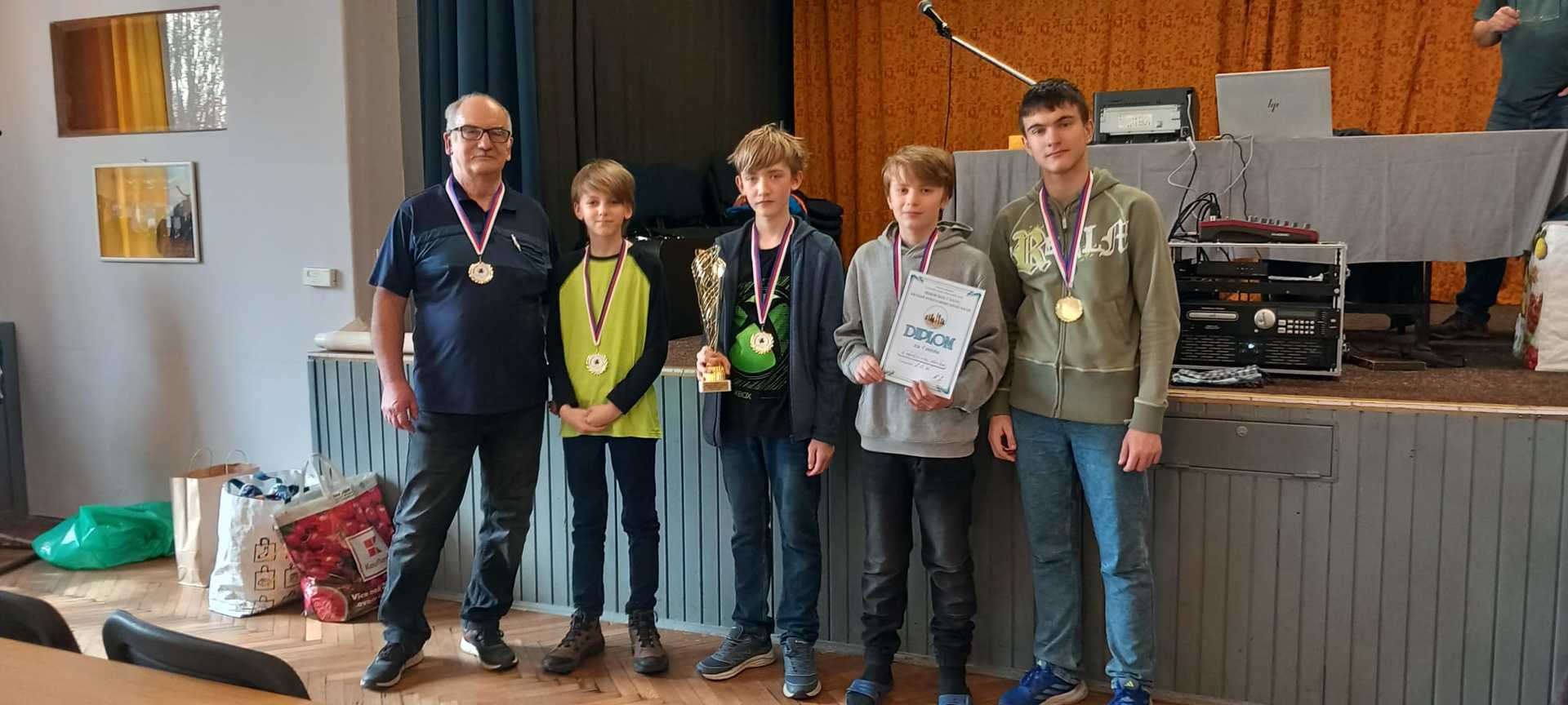 Velký úspěch zaznamenali naši šachisté Josef Masopust /6. A/, Petr Boleslav /6. C/, Štěpán Válek /7. D/ a Jakub Jína /9. B/, když se jim podařilo zvítězit 24. 3. 2026 v krajském kole v Přeboru škol v šachu v kategorii žáků 6. – 9. tříd ZŠ a příslušných ročníků víceletých gymnázií, a tím si zajistit postup na Mistrovství České republiky školních týmů v šachu, které proběhne ve Zlíně 22. až 24. 6. 2026. Soutěž proběhla v sále restaurace U Košků v Liberci v Pavlovicích.