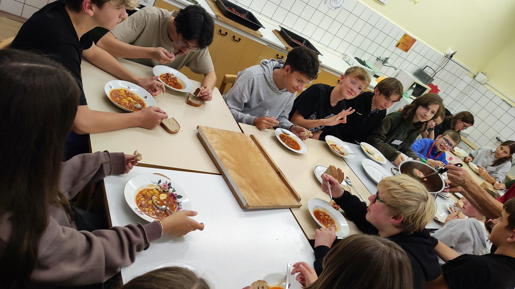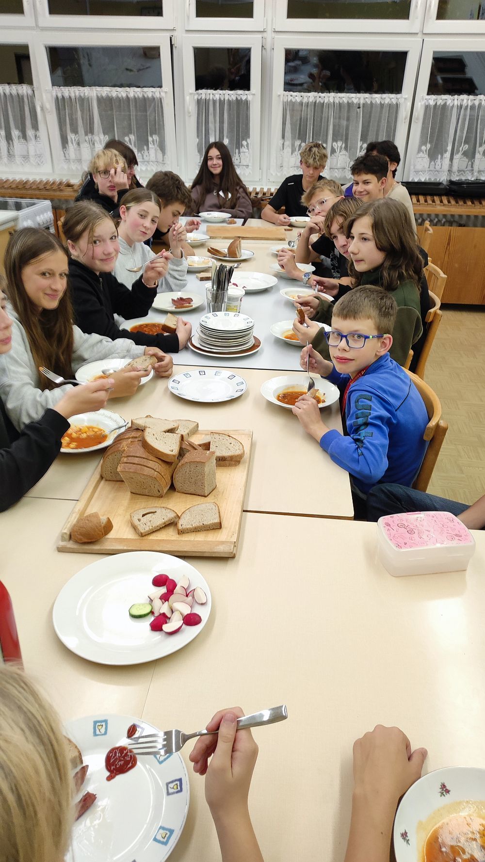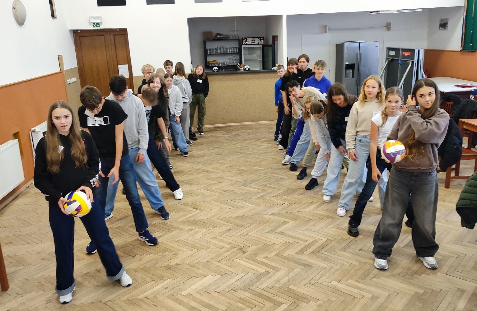 Toto setkání proběhlo ve čtvrtek odpoledne, večer a přespalo se ve škole. Jednotliví zástupci 5. až 9. tříd se vzájemně poznávali, hrály se hry, sportovalo se. I když nepřálo počasí, šli jsme do Radvance a v činnosti pokračovali v sále místního hostince. Večer se ve školní kuchyňce společně vařila večeře a pekla sladká snídaně.