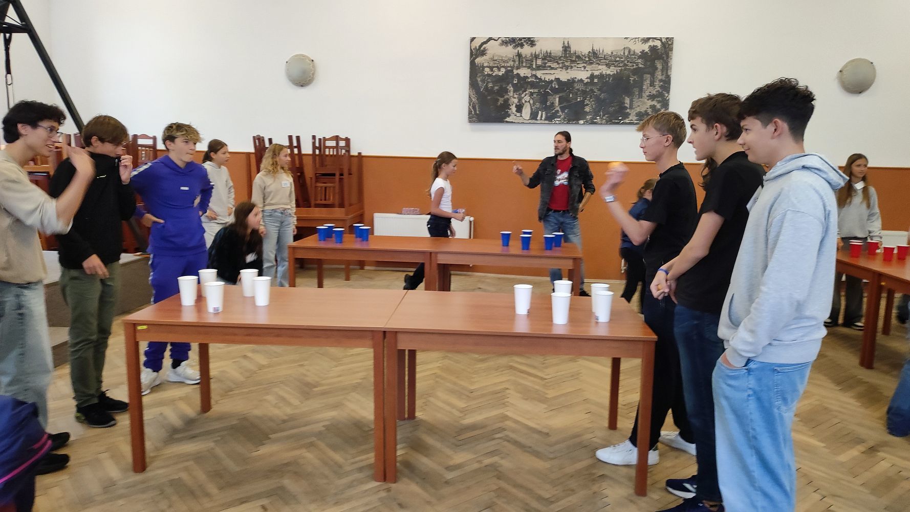 V kompletní sestavě, tj. dva zástupci z každé třídy, potom proběhla první schůzka. Hlavními body bylo vzájemné seznámení zástupců a příprava pracovního setkání s přespáním.