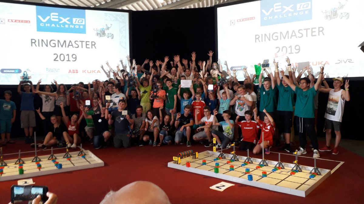Na závěř školního roku se v úterý 25. 6. 2019 v Praze Letňanech utkala třicítka týmů základních škol na celorepublikovém finále robotické soutěže VEX IQ Challenge Ringmaster. Celkovým vítězem se stal tým Duffs z Hrádku nad Nisou. V kategorii skupinové výzvy mladších žáků získal náš tým ROBO TV prvenství v alianci s týmem ROBO BOYS ze Sušice. Náš druhý tým starších žáků NÁMĚSTCI se umístil na 13. místě skupinové výzvy a na 14. místě v celkovém pořadí.